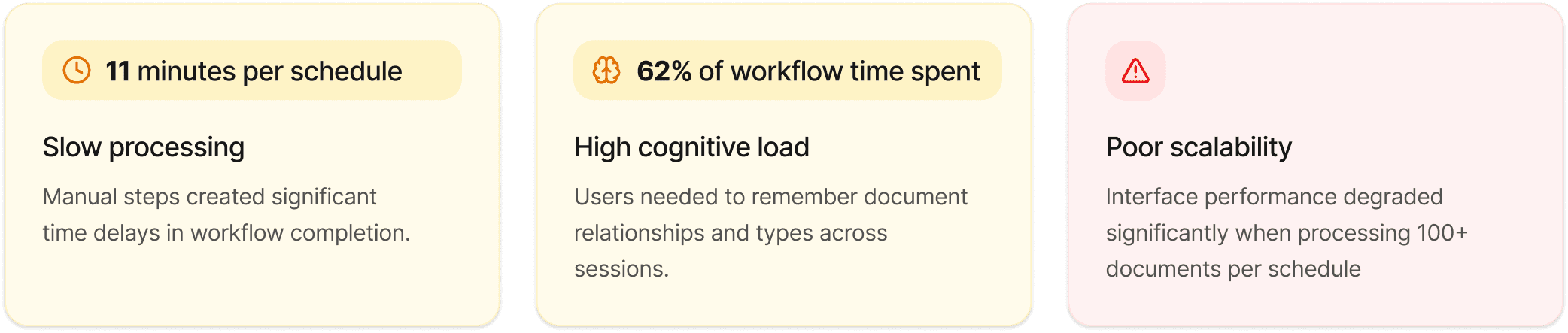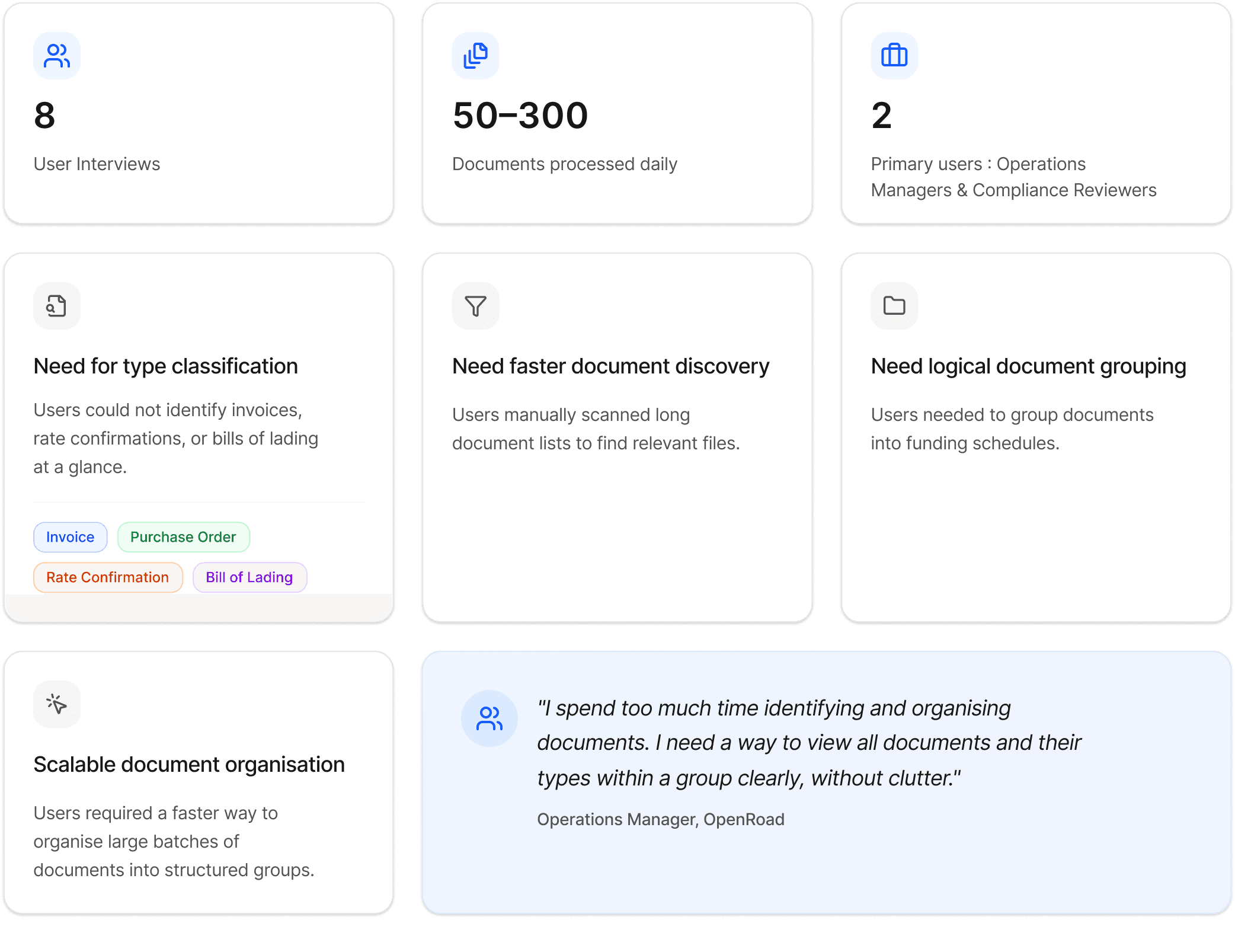 We conducted interviews with operations managers and compliance reviewers to understand their document processing challenges.