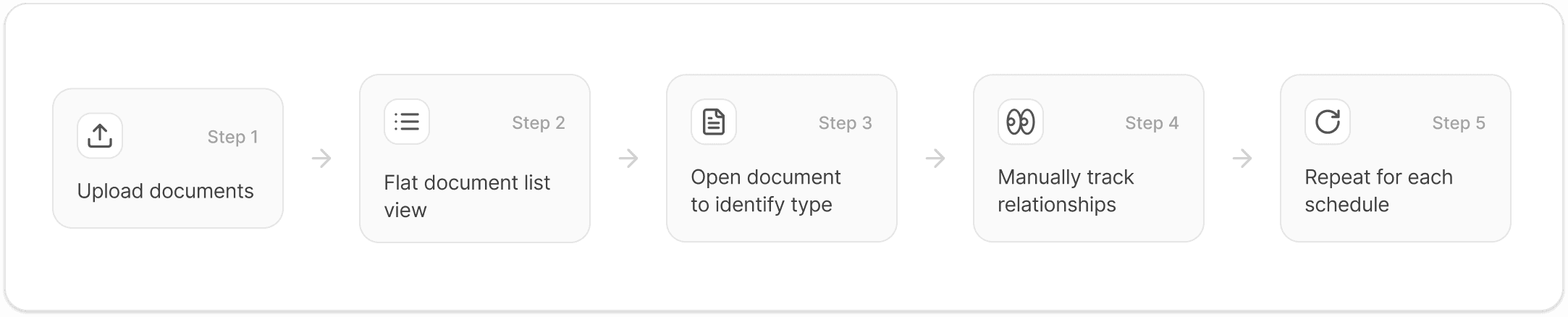 Users had to manually identify document types and manage relationships between documents.